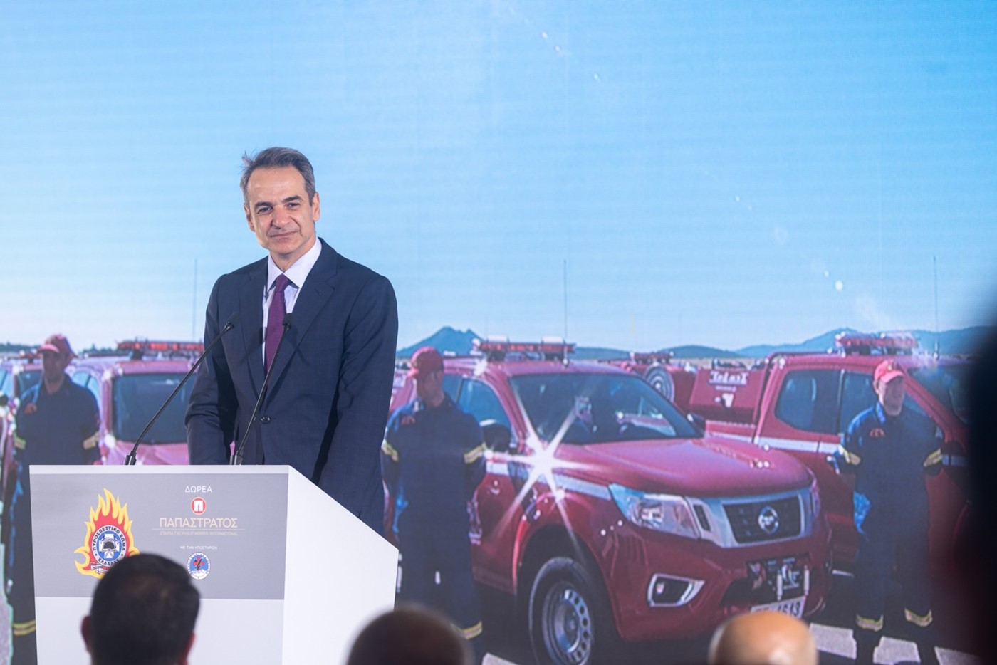 Ο Πρωθυπουργός κ. Κυριάκος Μητσοτάκης, αφού δήλωσε ότι η Ελλάδα εγγυάται ασφάλεια στους επισκέπτες της, αλλά πρωτίστως στους Έλληνες πολίτες, ανέφερε χαρακτηριστικά ότι: «Σήμερα είμαι διπλά χαρούμενος. Όχι μόνο γιατί ο στόλος της Πυροσβεστικής ενισχύεται από 20 σύγχρονα και ετοιμοπόλεμα οχήματα αλλά και γιατί αυτά προέρχονται από την δωρεά μιας εταιρίας, της Παπαστράτος, σε συνεργασία με την Ελληνική Ομάδα Διάσωσης. Πρόκειται δηλαδή για ένα χαρακτηριστικό παράδειγμα γόνιμης σύμπλευσης του ιδιωτικού τομέα με το δημόσιο και με το εθελοντικό κίνημα. Κάθε φορά που συμβαίνει αυτό κερδίζει η πατρίδα μας και ολόκληρη η κοινωνία.(…)
