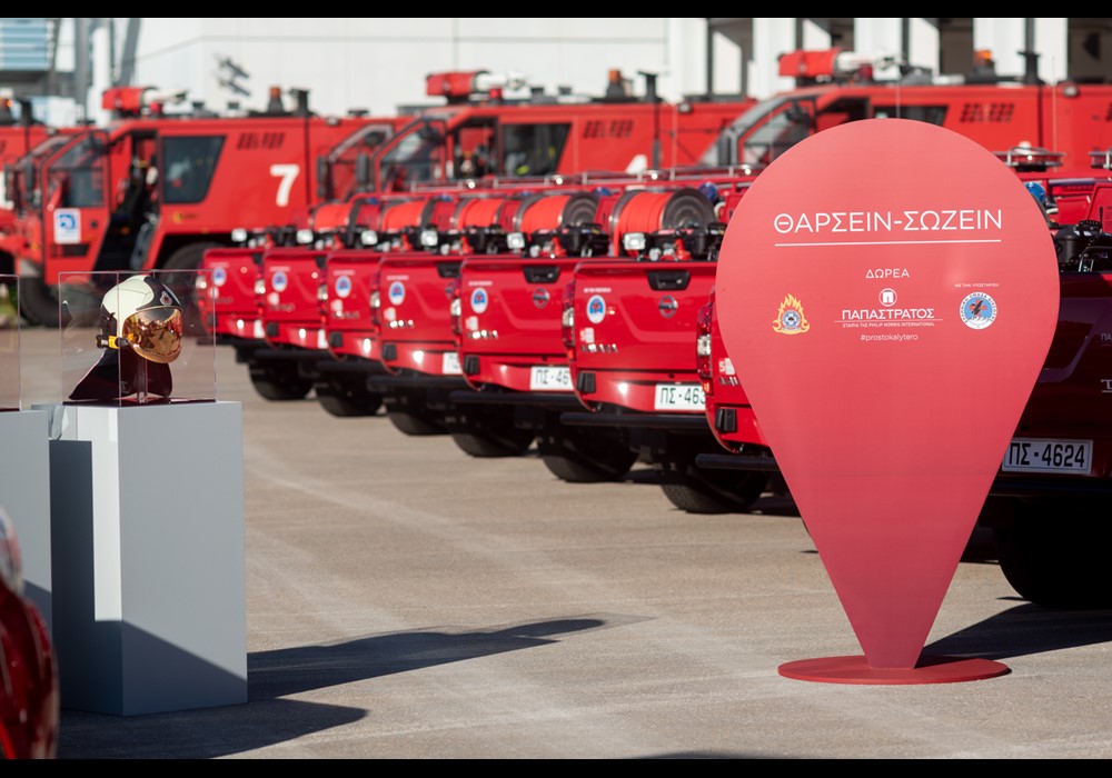 Παραδόθηκαν, σε ειδική τελετή που έλαβε χώρα στις εγκαταστάσεις του Διεθνούς Αερολιμένα Αθηνών Ελ. Βενιζέλος, τα 20 υδροφόρα πυροσβεστικά οχήματα 4Χ4 που έκανε δωρεά η Παπαστράτος στο Πυροσβεστικό Σώμα για την ενίσχυση του έργου του.