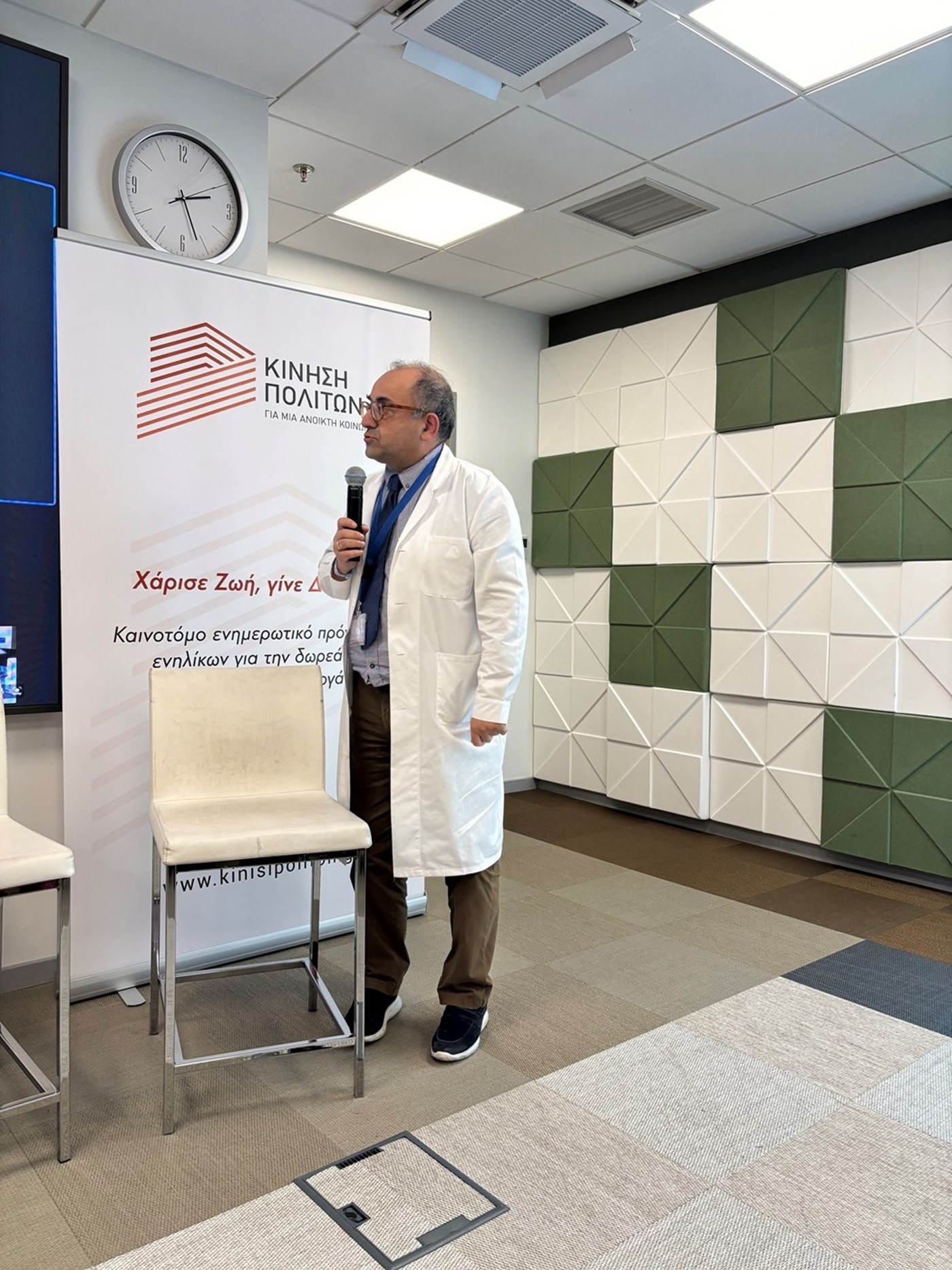 Η πρωτοβουλία ολοκληρώθηκε με ειδική ενημερωτική εκδήλωση, όπου διακεκριμένοι επιστήμονες και εκπρόσωποι της Κοινωνίας των Πολιτών μίλησαν για τη σημασία της δωρεάς και μεταμόσχευσης οργάνων, απαντώντας σε βασικά ερωτήματα και καταρρίπτοντας μύθους.